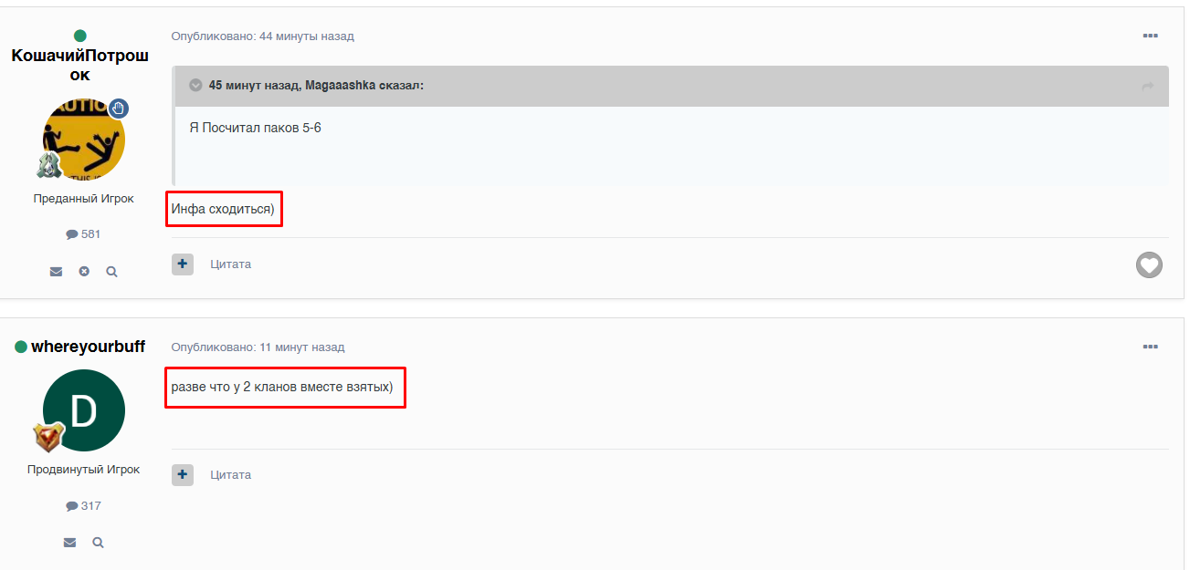 whereyourbuff Опубликовано: 22 августа Жалоба Поделиться Опубликовано: 22 августа у мурки и возмездия не будет 6 паков, у мурки 3-4 максимум, у возмездия дай бог 2 будет. Возмездие видел 3+ пака только когда играл в клане у делюкса, больше там никогда небыло) Цитата Ссылка на комментарий Поделиться на других сайтах Больше способов поделиться...